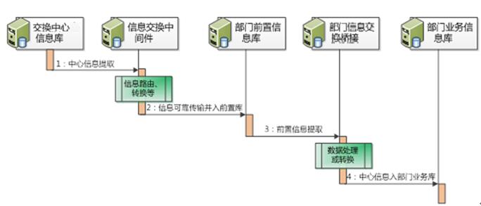 部門之間的交換,完成部門間專業(yè)信息的發(fā)送與接收,實現(xiàn)部門之間業(yè)務(wù)協(xié)同,如下圖所示: